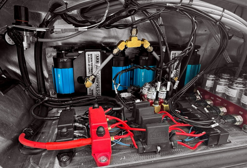 Arctic Trucks designs and develops our own CTIS systems. Available both in electronically controlled and manual valved variants, our CTIS systems provide accurate control and measurement of tire pressures to +/- 0.2 PSI. We use multiple ARB air compressors for redundancy, providing over 10 CFM of air to quickly inflate even our largest 44" tires.