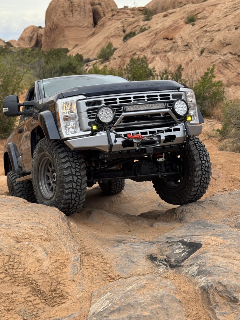 A modern day take on a throwback body style. Ford does not sell a regular cab, short bed Super Duty truck, so we made it ourselves! Removing 15 inches from the frame, the truck has a 125” wheelbase. We built this truck to be a lightweight, no frills off-road machine, equally as happy crawling around in Moab as it is in deep fresh snow.